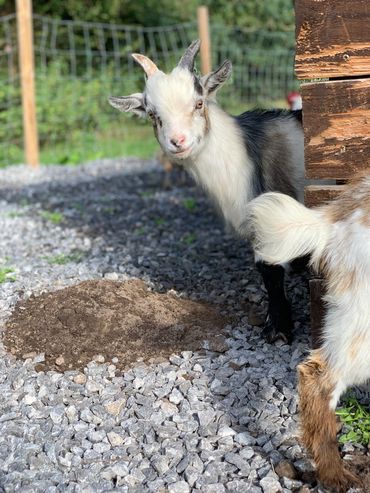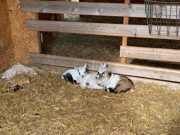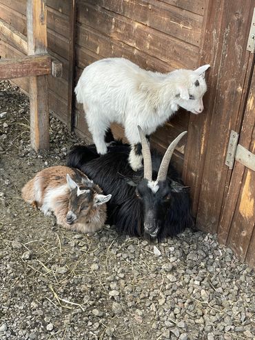 A goat can and will breed every six months, so males must be kept away from the females on a full time basis. You need to match a nanny to a suitable billy - size matters! Too larger male makes for a difficult birth and can be fatal if wrongly matched. We have a range of Billies which are available for stud services. Contact us for more information on our board and breed services.